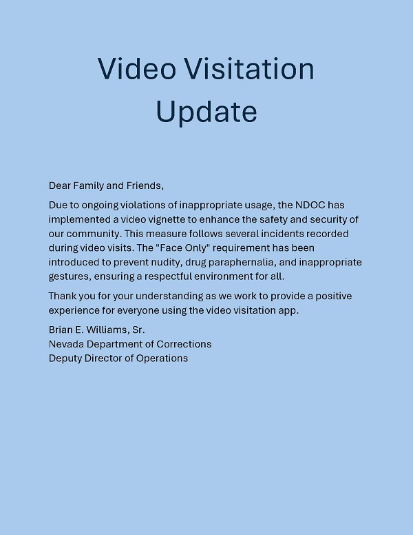 It is the mission of the Nevada Department of Corrections to protect society by maintaining offenders in safe and humane conditions while preparing them for successful reentry back into society. We operate as one Team, proud of our reputation as leaders in corrections. Our staff will utilize innovative programming that will focus on education, mental health, substance abuse treatment, and vocational training as the cornerstones to an offender's rehabilitation.